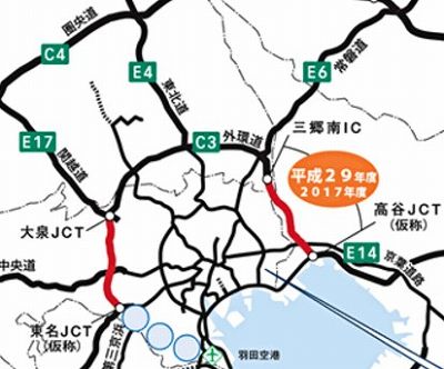バイパスとして役にたちだすのは、2017年度中に開業予定の三郷南IC-高谷JCT区間が開通してからになるだろう。