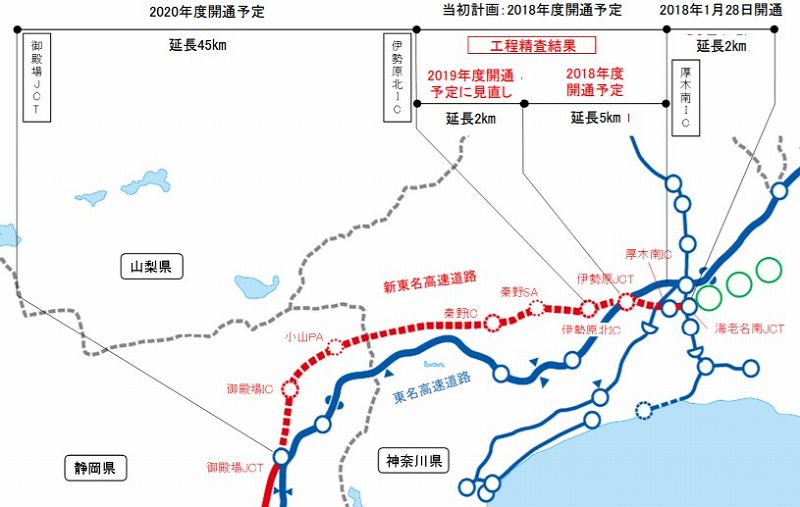 2018年夏現在では、御殿場ジャンクション(静岡県)まで開通済みで、神奈川県内のルートも2020年度には完成予定。
