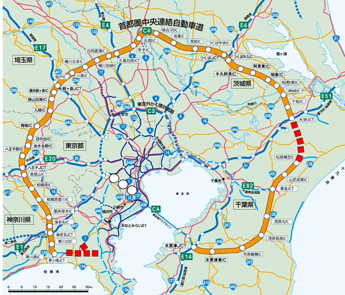 圏央道の東金ジャンクションから木更津東インターチェンジ間も、もともとは東金道路の三期工事プランであり、それを圏央道として利用していると言うことらしい。